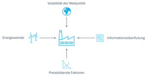 Die zunehmende Volatilität der Weltpolitik erfordert eine kontinuierliche Neubewertung der aktuellen Rahmenbedingungen. Entscheidend sind dabei die Identifizierung relevanter preisbildender Faktoren sowie ein gezieltes Informationsmanagement, das vor Informationsüberflutung schützt. Ergänzend ordnen wir Entwicklungen der Energiewende ein und zeigen daraus resultierende Risiken und Chancen auf.